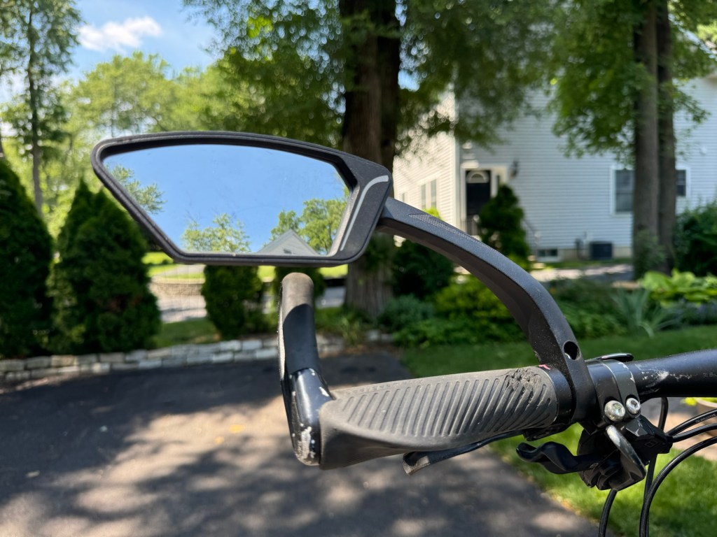 We’ve added Hafny Handlebar Bike mirrors to all our bikes. Sometimes we ride on the shoulders of roadways and it’s great to be able to see what’s behind you especially approaching cars. When we ride on the bike trails sometimes I am a little ways ahead of my wife and I can keep my eye on her by glancing in the mirror from time to time. We like these mirrors because they are easy to adjust and attached to your handlebars They also come in both a left and right hand version.