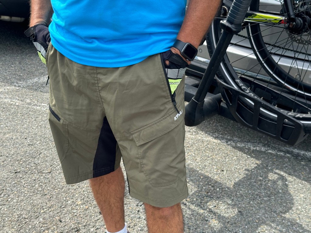 I’ve had a few pairs of the spandex style biking shorts with the padding. And they worked fine, but there were a couple of things I didn’t like about them. First of all, they don’t have any pockets and secondly, if we went on a ride somewhere and wanted to stop for lunch or go into a store, I always felt kind of self-conscious wearing that type of padded short. I really like these KPSUN Men’s Mountain Bike Shorts, they’re very comfortable and the padding works just as well as the traditional style bike short. I love having pockets that I can put my wallet and keys and other things in when I’m parking my bike and doing some thing else. I also don’t feel so self-conscious when I am in a restaurant getting lunch while on a bike trip. They have a total of four pockets in the front and no pockets in the back. They come in a variety of colors. I have two of these so if one is in the laundry, I still have a clean pair.