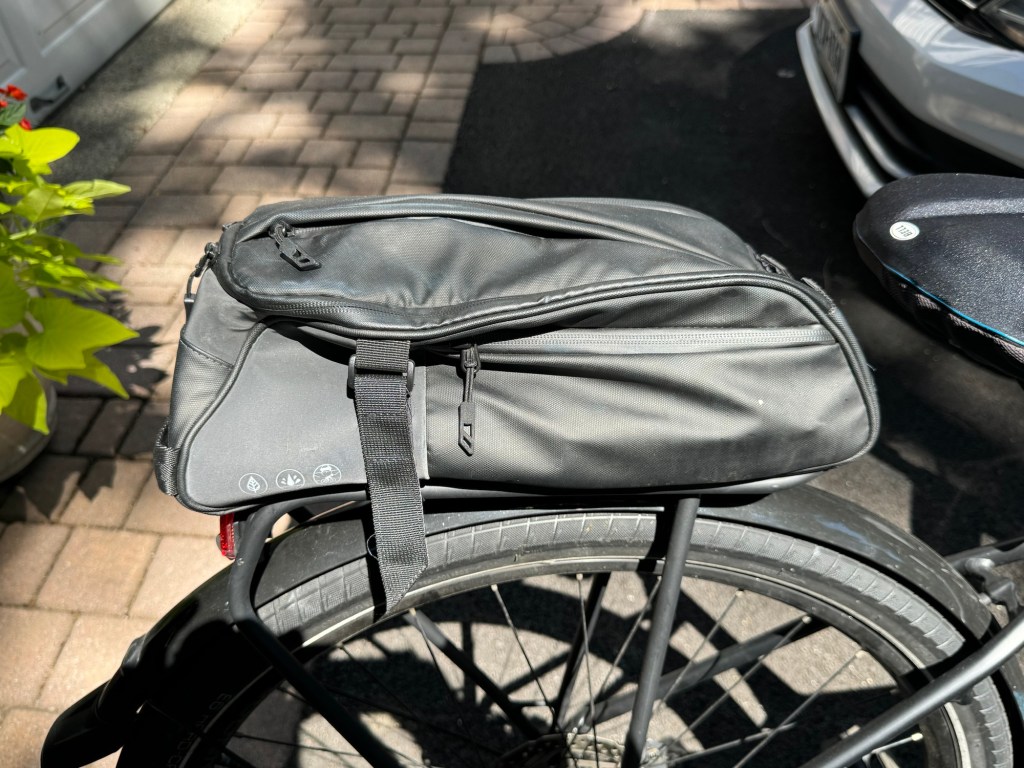 We purchased electric bikes, a couple of years ago and they came with the rack over the rear wheel, so we also purchased these saddlebags. We do have other bikes and now we use them whenever we go riding. They have small pockets on the sides and on the top for things like your car keys or your wallet or your glasses. The large pocket is great for holding repair tools, snacks, raincoats, bike locks and anything else you want to bring along. They also came with a rain cover in case you get caught in the rain. They’re very easy to attach to any rack with four Velcro straps and remain very secure. If you’re locking your bikes up and don’t want to leave the bags with your bike, they include a shoulder strap so you can carry them like Crossbody bag. The one we use is currently unavailable, but we provided a link to a good alternative.